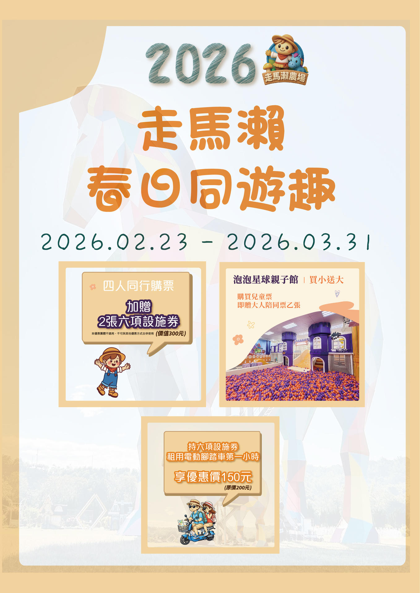 走馬瀨農場是個365天全年無休的四季遊樂園,擁有豐富的自然生態資源,歡迎個人或團體隨時蒞臨。